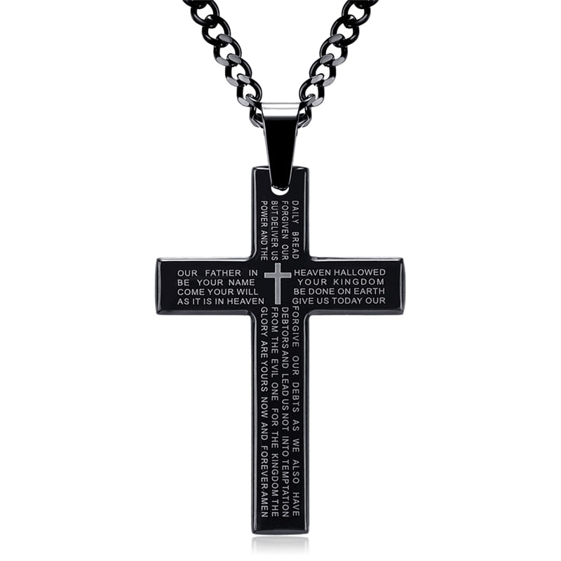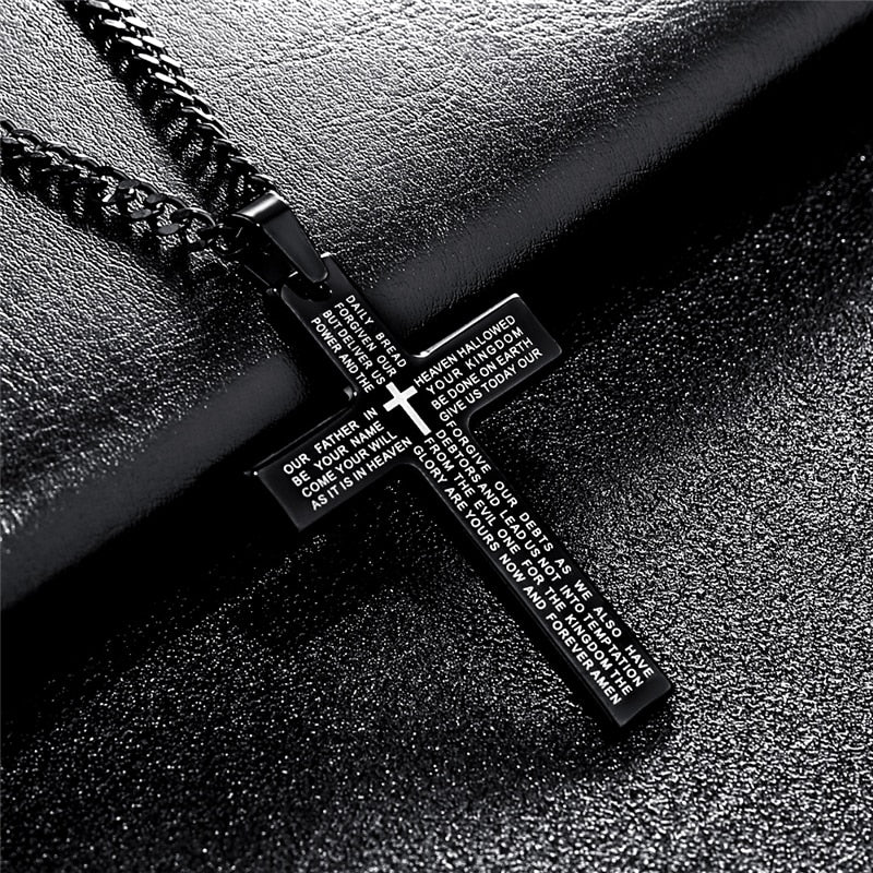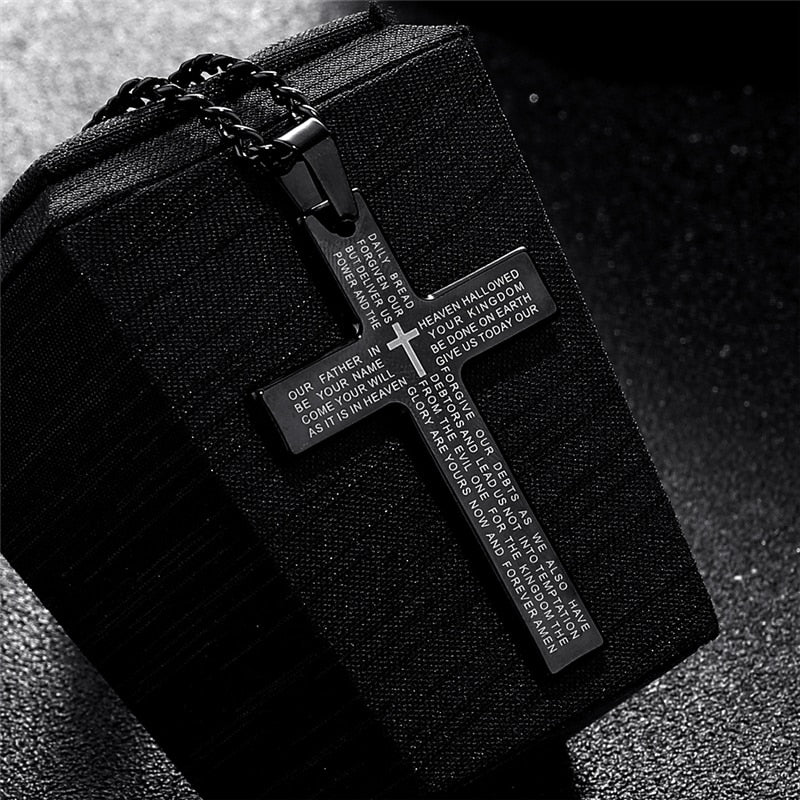 Retro Christian Titanium Scripture Cross Pendant Necklace!